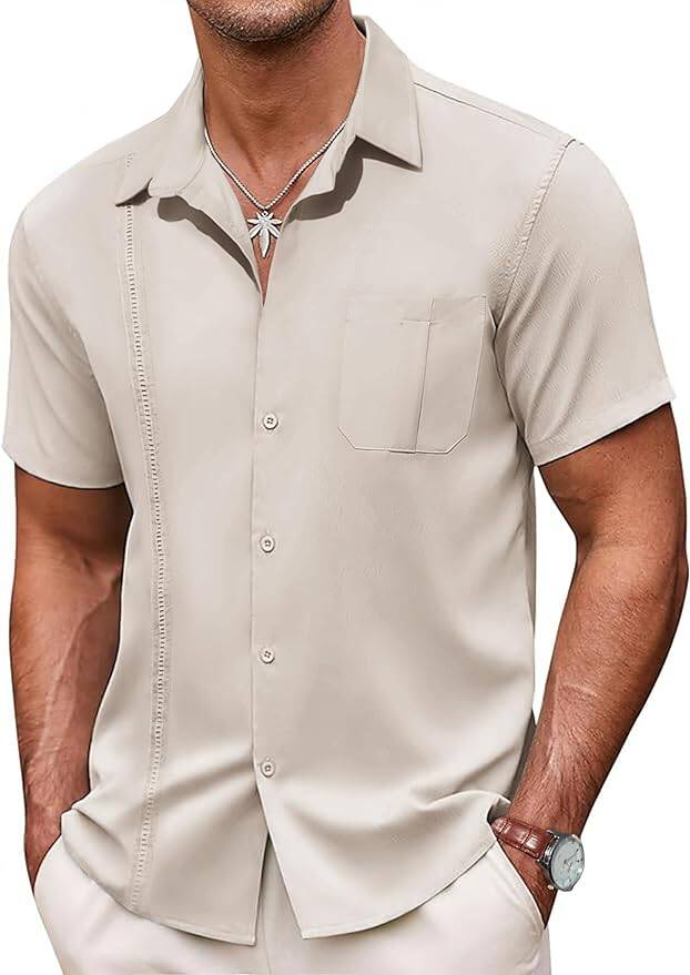 Mens cuban shirt is made of soft,lightweight,skin-friendly,comfortable ,breathable and wrinkle free premiun material.