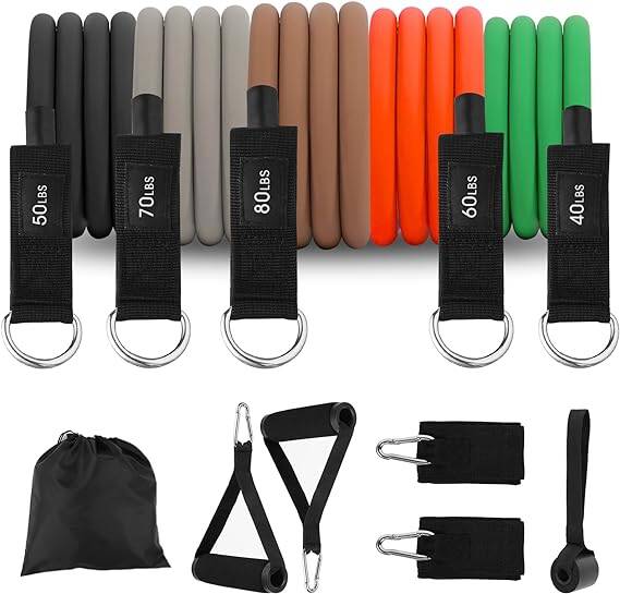 💪【MULTI-LEVEL HEAVY DUTY RESISTANCE HANDLES】 - The resistance bands provide 5 different resistance levels, 40/50/60/70/80 lbs. You can use the bands independently or in any combination, with a maximum resistance level of 300 lbs. This caters to diverse fitness levels and goals, offering a personalized and progressive workout experience for beginners to advanced users.
