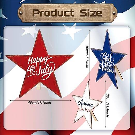 3 Pcs 4th of July Porch Sign Patriotic Large Wooden Stars Outdoor Decor Independence Day Welcome Porch Standing Door Sign Decoration for Front Door Home Farmhouse Garden Patio(Classic), for just $6.99 with promo 30VK2S3L! Through 7/5/24. Click HERE