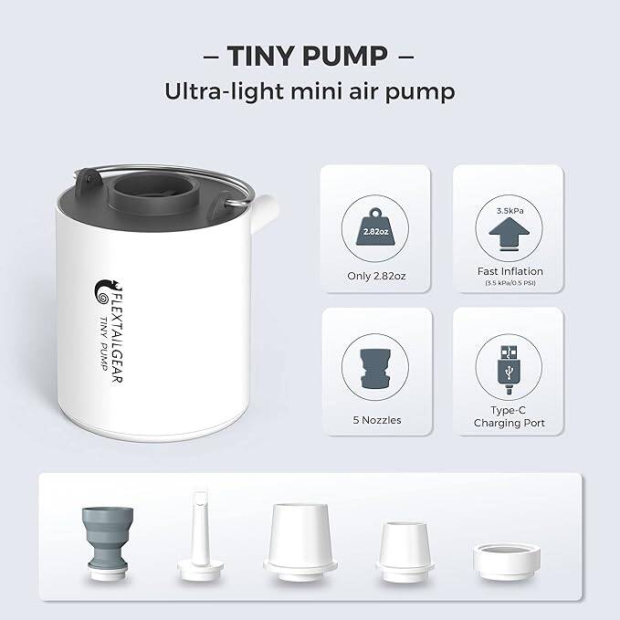 FLEXTAILGEAR Tiny Portable Ultra-Mini Air Pump with 1300mAh Battery USB Rechargeable to Inflate Deflate for Pool Floats Air Bed Mattress Swimming Ring Vacuum Storage Bags (Grey), drops from $32.99 to $27.98! Click HERE