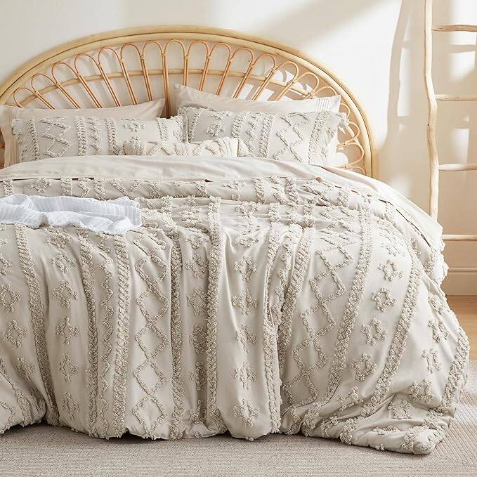 Amazon Prime Members, Bedsure Tufted Boho Comforter Set on sale in all sizes and in various prices! The pictured Queen size, - Linen Boho Bedding Comforter Set, 3 Pieces Farmhouse Shabby Chic Embroidery Bed Set, Soft Jacquard Comforter for Women Men Girls, for just $42.00 after you clip the extra 10% off coupon! Click HERE