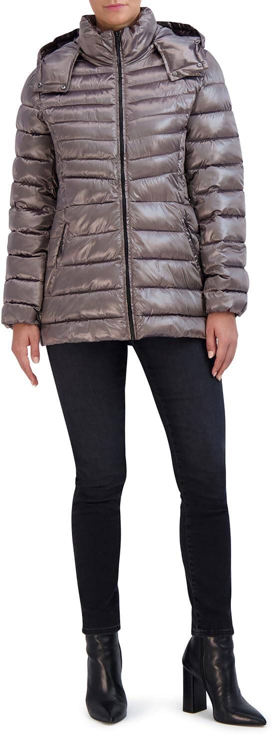 Cole Haan womens Pearlized Faux Down Jacket With Removable Hood, in the color Gunmetal, drops from $225.00 to $87.75! This also comes in the color Emerald , for just $89.75! All sizes are available! Click HERE