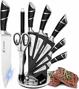 On that same page you can just purchase the knife set alone. Kitchen Knife Set,9-Piece Black Chef Knife Sets with Acrylic Block, Non-stick Coated Stainless Steel Knives Set for kitchen Gift for Women Girls,Ergonomic Handle Design (Black), for just $14.99!