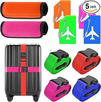 Luggage Straps - Secure and Durable Suitcase Straps for Travel - Adjustable Travel Belt and Bag Straps - Luggage Accessories for Easy Identification - Pack of 10, for just $9.74 with promo 359MIKJG Through 1/10/25. Go HERE for sale! Luggage straps set includes 4 pieces of adjustable straps ,4 colorful silicone luggage tags and 2 handle wrap, for easy luggage identification.