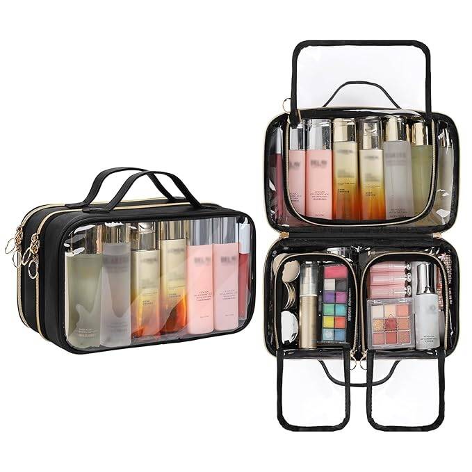 OCHEAL Travel Toiletry Bag, Double Layer Clear Makeup Bag Organizer Large Capacity Cosmetic Bag for Traveling Women Beauty Essentials, Multiple Compartments Makeup Case- Black, for just $11.89 with promo 30AFGE1D! Through 1/23/25. Go HERE
