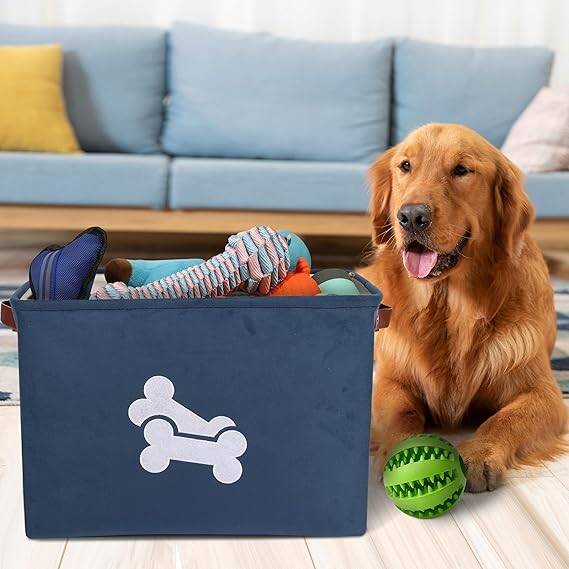 PET ARTIST Rectangle Dog Toy Basket, Soft Velvet Dog Toy Bin with Comfortable Handles, Collapsible Dog Toy Storage Box Chest Organizer for Pet Toys Leash Blanket Clothes Accessories, Blue, for just $13.49 with promo 503HYTLI! Through 1/20/25. Go HERE