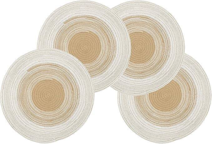 Round Braided Placemats Set of 4 Washable Cotton Polyester 15 inch Round Placemats for Kitchen Dining Table Decor Round Table Mats (Beige or Blue), for just $18.59 with promo 40HJ1CMG! Through 1/31/25. GO HERE