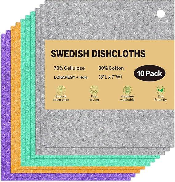10PACK Swedish Dishcloths for Kitchen, Absorbent Cleaning Rags for Washing Dishes, Reusable Dish Towels for Cleaning House, Eco-Friendly Wash Cloth That Don't Smell, FOR JUST $4.99 WITH PROMO 50L3U743! THROUGH 3/15/25.