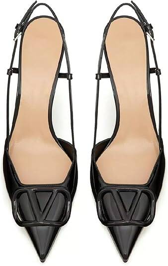 These beautiful shoes are inspired by the Valentino Garavami Vlogo Slingback Shoe! Women Heeled Sling back Sandals Closed Pointed Toe Stiletto High Heels Patent Leather Pumps Slip-On Backless Evening Prom Party Dress Shoes, in assorted colors, for just $64.99! Go HERE