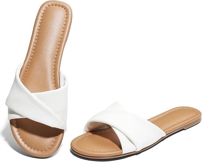 Tscoyuki Sandals for Women 2025: Womens Sandals Comfortable Dressy - Folded Strap Slip On Resort Flat Sandals Beach Sandals Slides, FOR JUST $14.99 WITH PROMO 50HCY52Q! GO HERE