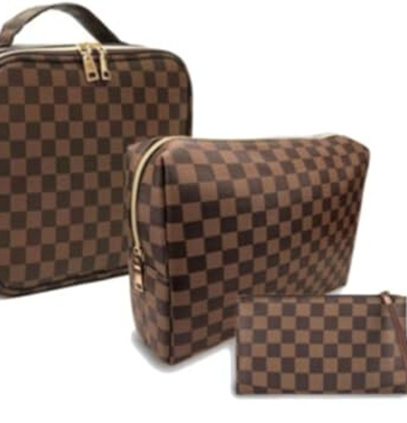 Amazon Find -price drop!! Makeup Bag,3 Pcs Brown Checkered Bags Set,Portable Makeup Bag with Adjustable Partition,Large Capacity Pouch,Travel Cosmetic Bags,Makeup Brushes Bag,Waterproof Toiletries Bags,Designer Bags for Gift, for just $33.99! Go HERE