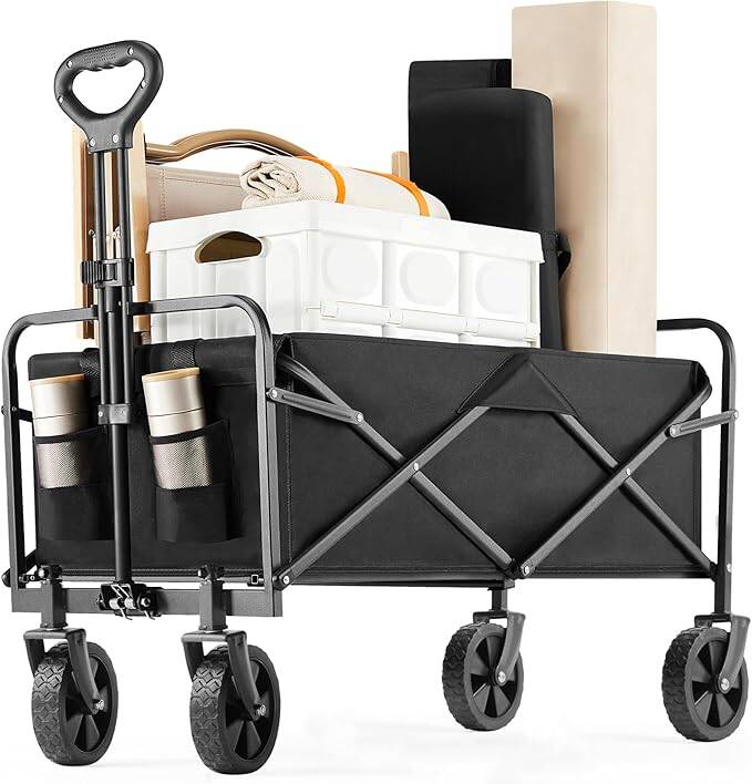SMUG Collapsible Wagon Cart Foldable, 30" L Folding Beach Wagon with All-Terrain Wheels, Shopping Cart with 250lbs Capacity, Portable Camping Wagons Carts for Grocery Garden and Sports, Black, drops from $49.99 to $29.98! Go HERE
