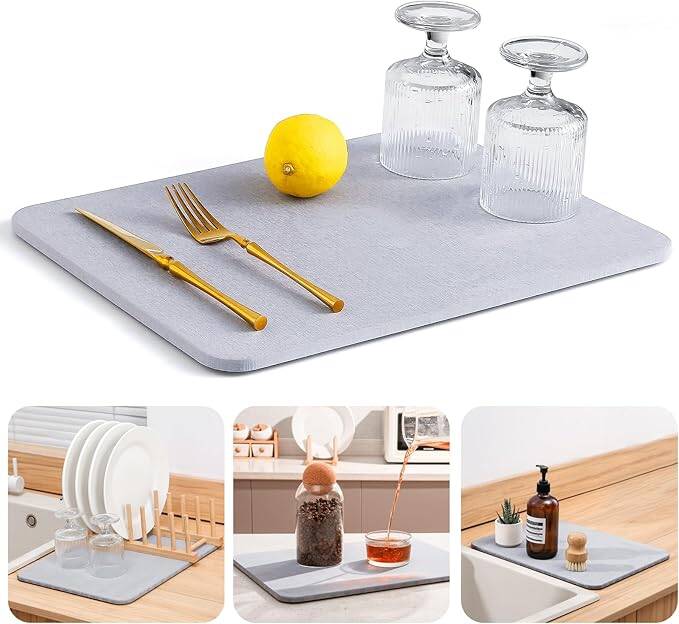 Super Absorbent Stone Drying Mat for Kitchen Counter, Fast-Drying Diatomaceous Earth Dish Drying Mats, Versatile Stone Drying Tray for Cups Dishes Bottles, Light Gray, for just $12.99 with promo 50HD4XVQ! Through 3/4/25. Go HERE
