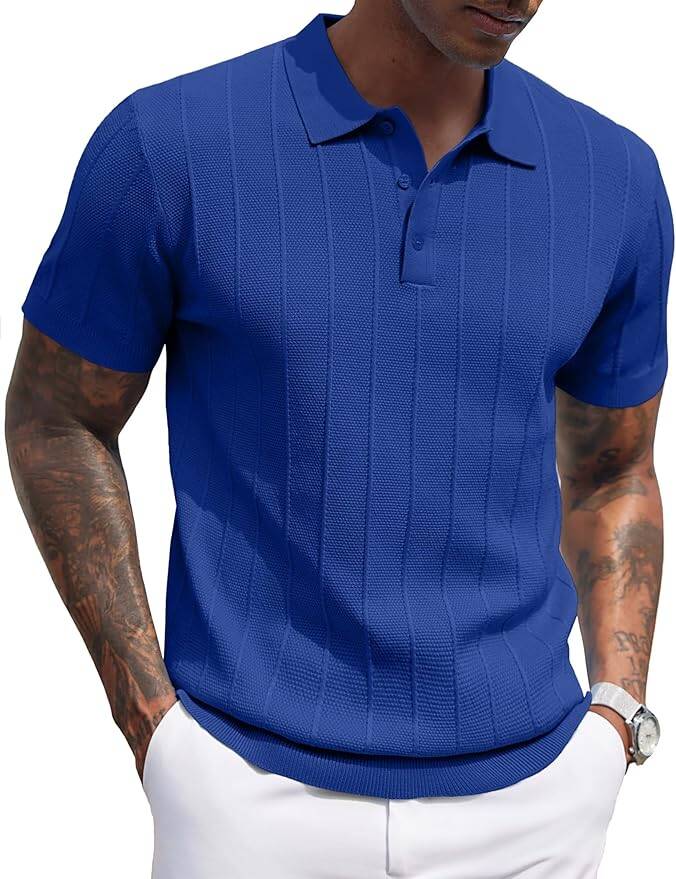 COOFANDY Mens Knit Polo Shirts Short Sleeve Ribbed Textured Polo Shirt Lightweight Casual Golf Shirts Collared T Shirt, tons of colors to choose from, for just $24.64 + check 15% off coupon! Go HERE
