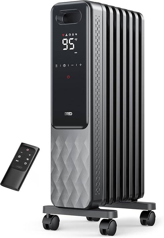 Dreo Oil Filled Radiator, Electric Radiant Heaters for indoor use Large Room with Remote Control, Child Lock, 4 Modes, Overheat & Tip-Over Protection, 24h Timer, Digital Thermostat, Quiet, 1500W, drops from $99.95 to $89.95! Go HERE