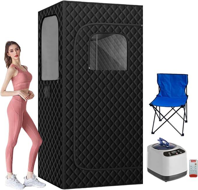Portable Sauna for Home, Full Body Sauna Box, Personal Steam Sauna with 3L 1000W Steamer, 9 Temperature Settings, Remote Control Included, Home Sauna with Sauna Chair and Floor Mat, Black, for just $89.50 , after you check 50% off coupon! Go HERE