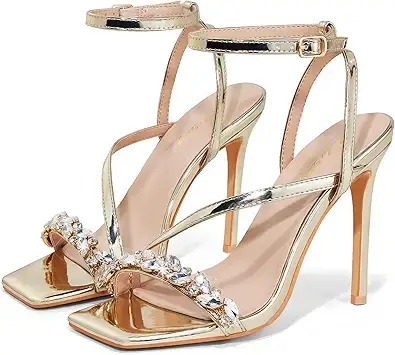 Elisabet Tang Women’s Crystal Stilettos Heeled Sandals, 4 Inch Square Open Toe Strappy Sexy High Heels Ankle Strap Buckle Heels for Party Wedding Dress Daily Wear Shoes, in nine colors, for just $52.99! Go HERE