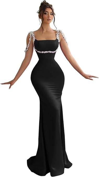 Mermaid Prom Dresses for Women 2024 Beaded Satin Long Formal Evening Gowns Backless, for just $59.99! Go HERE