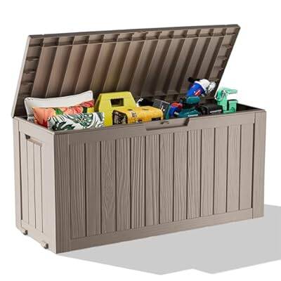 76 Gallon Outdoor Deck Box,Storage Lockable Waterproof Patio Furniture,Garden Tools,Cushions,Pool Accessories Outside Storage Resin Box(Light Brown or Black ), for just $57.99 with promo 50CCQA8W! Through 4/30/25. Go HERE