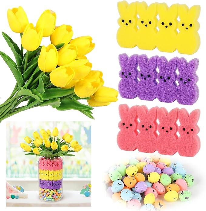 Create your own Easter decorated vase with this set! Easter Decorations, 16 Artificial Tulips with 48 Bunnies and a Bag of Eggs Vase Filler Set, Easter Centerpiece Table Decorations, Spring Home Decoration for Tables (Yellow),on sale for just $12.99! Go HERE
