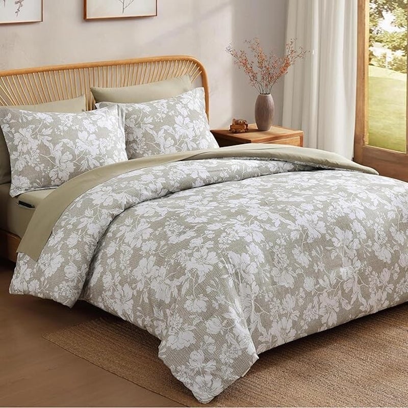 CASAAGUSTO Queen Comforter Set, 7 PCS Khaki Floral Comforter Set with Sheets, Monocolor Flowers Pattern Queen Bedding Set, Soft Lightweight Bed in a Bag for All Seasons(90"X90"), for just $33.59 with 30% off promo code WJ5PIXGN! Go HERE