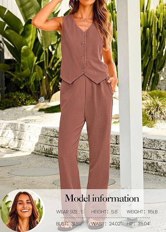 KIRUNDO Womens Two Piece Outfits Summer Fashion Button V Neck Crop Vest Blazer and Wide Leg Pants Suit Matching Sets, assorted colors, for just $24.94 with promo 50YK1CUY! Through 4/18/25. Go HERE