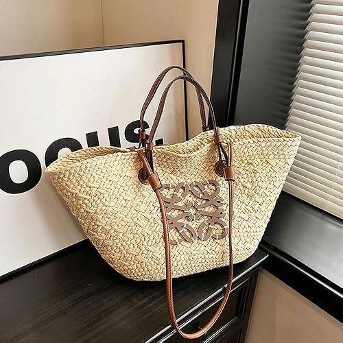 Love this beach bag design! Loewe Anagram Basket Inspired Handbag! Straw Bag - Large Capacity Hand-Woven Tote for Beach - White, for just $15.73! Go HERE