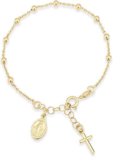 Perfect gift for MOM! Miabella 18K Gold Over Sterling Silver Italian Rosary Cross Bead Charm Link Chain Bracelet for Women, Adjustable, 925 Made in Italy, for just $19.90! Go HERE