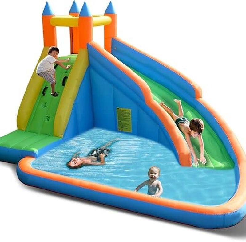 Inflatable Water Slide for Kids Backyard 12-in-1 Blow Up Water Park with 520W Blower, Climbing Wall, Splash Pool, 2 Water Squirters, 2 Water Cannons, Double Water Slides with Sprinklers Outdoor Party, for just , $299.99, after you check $40.00 off coupon! Go HERE