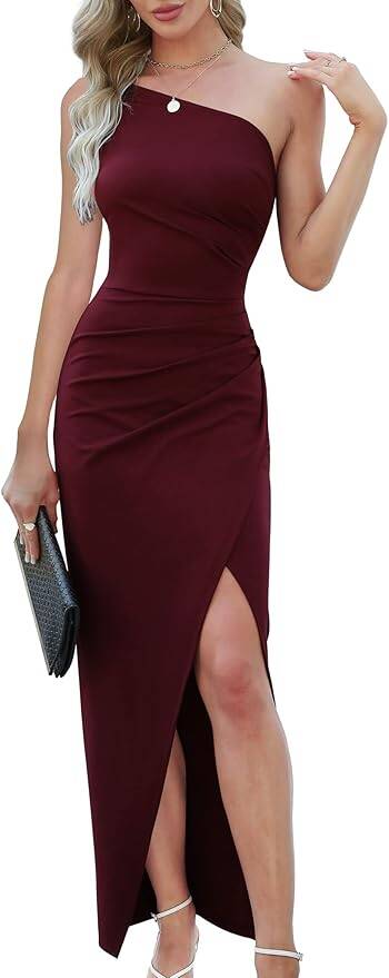 Sarin Mathews Womens One Shoulder Long Formal Dress Sexy Summer Sleeveless Bodycon Ruched Wrap Split Cocktail Dresses,assorted colors, prices vary, on sale for just $45.04! Go HERE