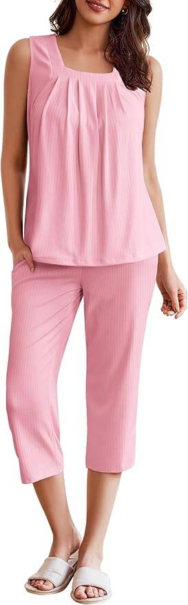 Ekouaer Womens Pajamas Set Pleated Square Neck Sleeveless Tops and Capri Pants Lounge Sets 2 Piece Summer Outfits, in assorted colors, for just $9.89, with promo deducted at checkout! Through 5/31/25. GO HERE