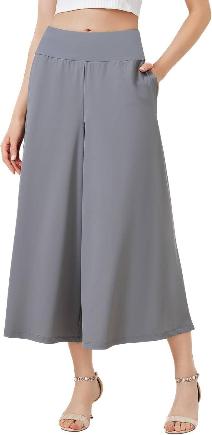 Turnhier Womens Culottes Elastic Waist Wide Leg Pants Casual Summer Palazzo Pants Lounge Trousers with Pockets, comes in four colors, for just $15.00! Go HERE
