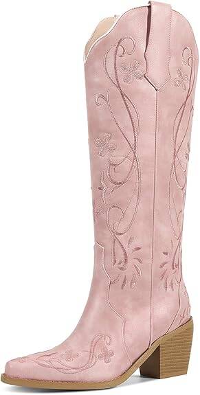wet kiss Cowboy Boots for Women Knee High Cowgirl Boots, Western Boots with Floral Embroidered Pointed Toe Chunky Heel Pull On Retro Vintage Classic Tall Boots for Ladies, in six colors, prices vary, for just $69.99! Go HERE