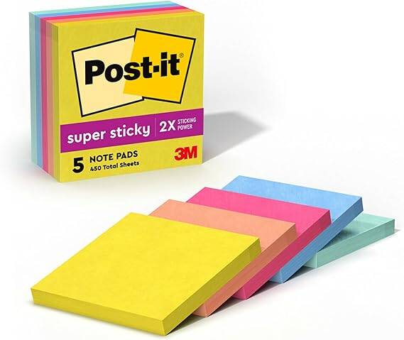 Post-it Super Sticky Notes, 5 Sticky Note Pads, 3 x 3 in., School Supplies, Office Products, Sticky Notes for Vertical Surfaces, Monitors, Walls and Windows, Summer Joy Collection, on sale for just $6.12! Go HERE