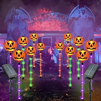 SANJICHA 12-Pack Solar Pumpkin Pathway Lights Halloween Decorations Outdoor, Halloween Lights Waterproof with 8 Modes, Solar Garden Lights Outdoor for Halloween Decorations (Orange Purple and Green), for just $22.49, with promo code deducted at checkout! Through 8/27/25. Go HERE