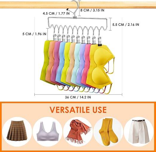 Keep your closet neat and maximize space with this 2-pack metal organizer set, designed to hold leggings, yoga pants, skirts, bras, hats, and more. Each hanger includes 10 non-slip rubber clips for secure, wrinkle-free storage.