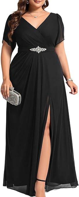 Step into elegance with the Ever-Pretty Plus Size Chiffon Maxi Dress, designed with timeless details for the most special occasions. This A-line formal gown features a flattering V-neckline, delicate cap sleeves, and a touch of sparkle with rhinestone embellishments at the waist.