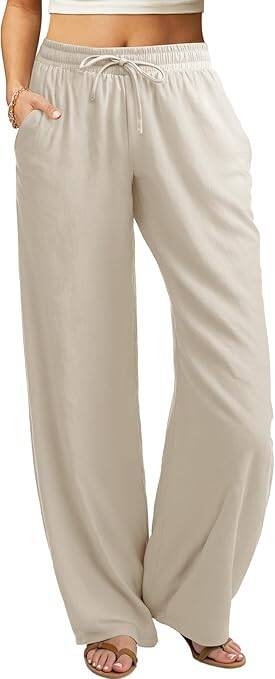 keriffe Women's Summer Casual Pants Loose Fit Beach Pants High Waist Drawstring Wide Leg Palazzo Trousers Pockets Linen,in assorted colors, for just $17.99! GO HERE
