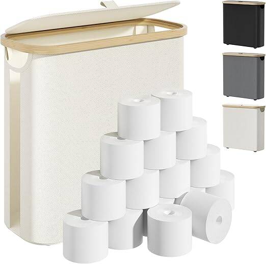 Toilet Paper Storage with Lid and Handle, 16 Roll Toilet Paper Basket Bathroom Standing Organizer, Folding Storage Bag with Foot Base, Slim Holder Container for Rolling Tissue, Towel, Toys - Beige, on sale for just $19.99! Go HERE