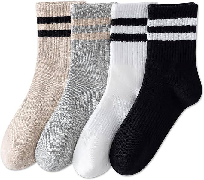 YUWELL Women's Striped Crew Socks, Cotton Cozy Casual Socks for Women 4 Pairs, Size 5-10, assorted, on sale for just $14.99! Go HERE