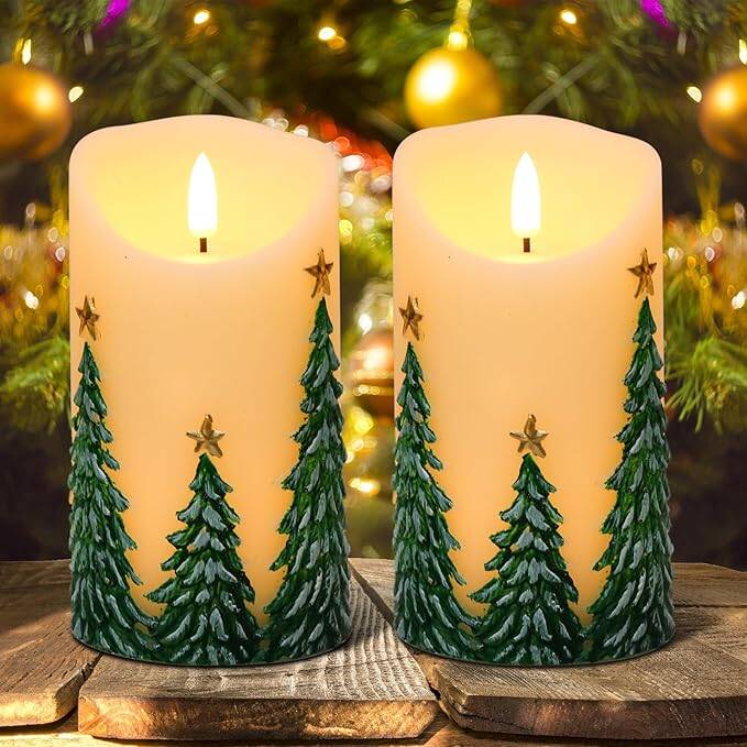 Wondise Christmas Flameless Candles with Timer, Battery Operated Flickering 3D Wick Real Wax Christmas Tree Candles for Christmas Holiday Indoor Decoration, Set of 2, Ivory(D3 x H5.7 Inch), for just $23.99! Go HERE
