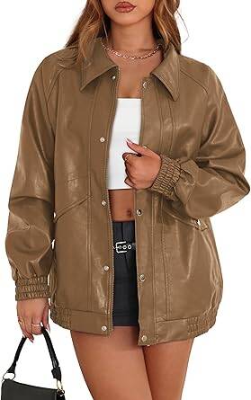 XIEERDUO Leather Jacket Women Fall Outfits 2025 Oversized Motorcycle Y2K Clothes Faux Leather Pocket Winter Coats Zip Up, in assorted colors, prices vary on colors chosen. Pictured color Khaki, on sale for just $26.99! Go HERE