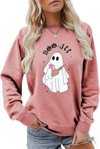 Boo-Jee Ghost Halloween Sweatshirt for Women Cute Ghost Graphic Fall Spooky Season Long Sleeve Crewneck Pullover Top, assorted colors, for just promo auto deducts at checkout! Through 10/6/25. Go HERE