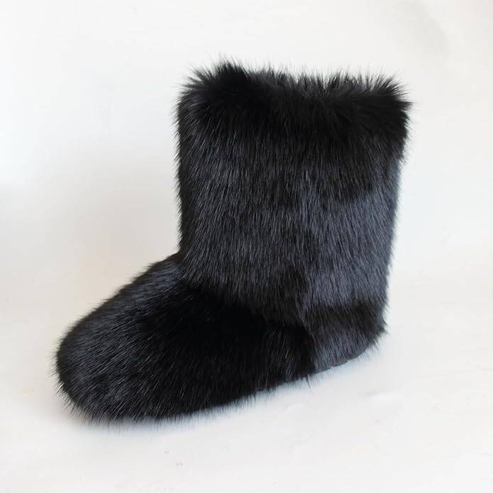 QMFUR Women's Furry Faux Fur Boots Fuzzy Fluffy Mid Calf Snow Boots Suede Warm Fur Lined Booties Flat Fashion Boots , in assorted colors, prices vary by color, Black color only, on sale for just $26.01! Go HERE