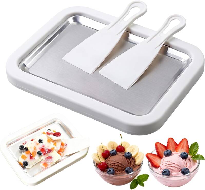 Rolled Ice Cream Maker Kit - 2026 New Stainless Steel Instant Freeze Plate with 2 Scrapers & Tray, Easy DIY Homemade Ice Cream Rolls, At-Home Family Fun Dessert (White B), on sale for just $15.99! Go HERE