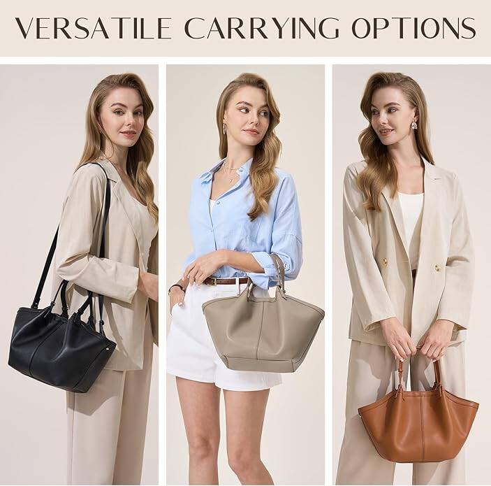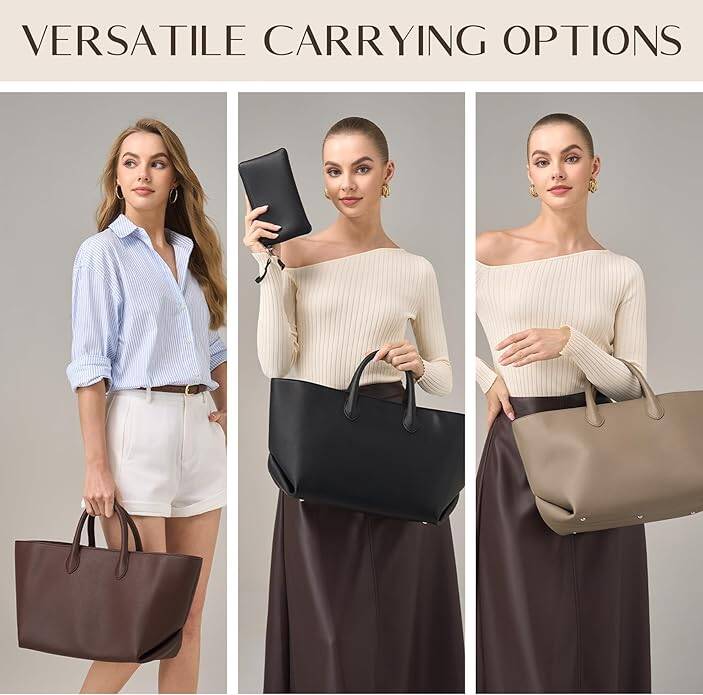 CHUNLI Leather Tote Bag for Women, Large Top-handle Handbags with Detachable Pocket for Work Travel Events Casual, in three colors , for just $24.99 after promo!