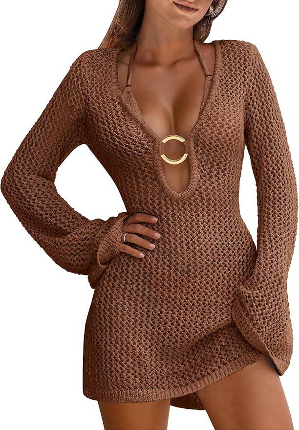 The ANRABESS Women’s Beach Crochet Cover-Up features a lightweight knit mesh design with a flattering hollow-out style that’s easy to throw on over your swimsuit. It’s ideal for beach days, poolside lounging, cruises, and tropical getaways, giving you an effortlessly chic look without trying too hard.