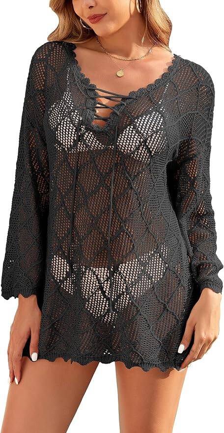 Women's Crochet Cover Ups 2025 Hollow Out Bathing Suit Bikini Coverup Knit Swimsuit Beach Dress, in assorted colors, on sale at 50% off, get it now for just $10.99, use promo code 4NREHEEM at checkout ! Through 2/9/26