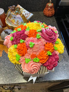 My daughter surprised me with this beautiful yummy looking cupcake bouquet! (Pictured Below)