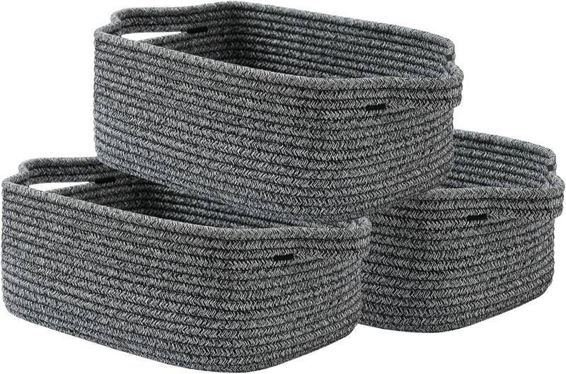 These cute rope storage baskets measure 14 x 10 x 5.6 inches, making them ideal for shelves, closets, gift baskets, dog toys, or everyday clutter. The mixed black woven design adds a stylish, modern touch that works in any space while still being functional.